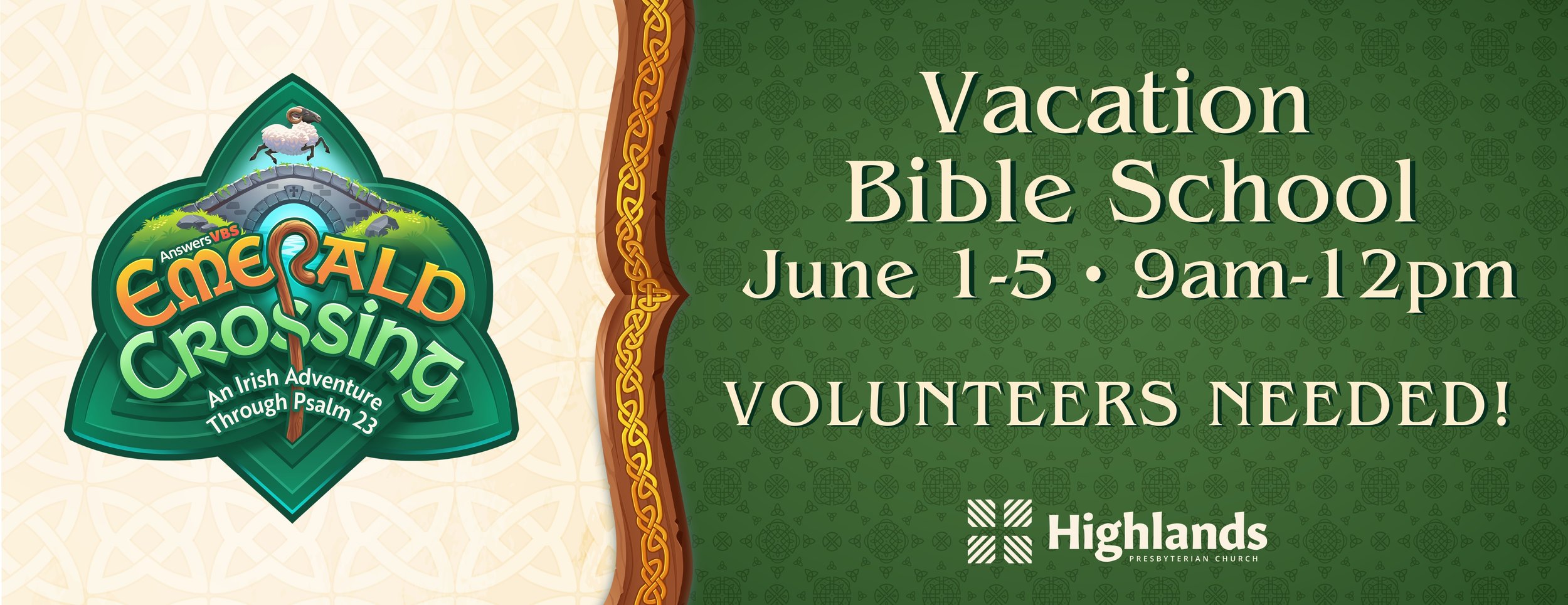 Volunteers needed for VBS 2026: Journey with us to Emerald Crossing: An Irish Adventure Through Psalm 23 on June 1-5, 9:00am to 12:00pm. We will discover more about our Good Shepherd as we view him through the eyes of David as a shepherd and king. Adult volunteers are needed to guide them through various activities such as Bible study, games, crafts and recreation. Please sign up using the QR code. https://highlandspca.ccbchurch.com/goto/forms/397/responses/new